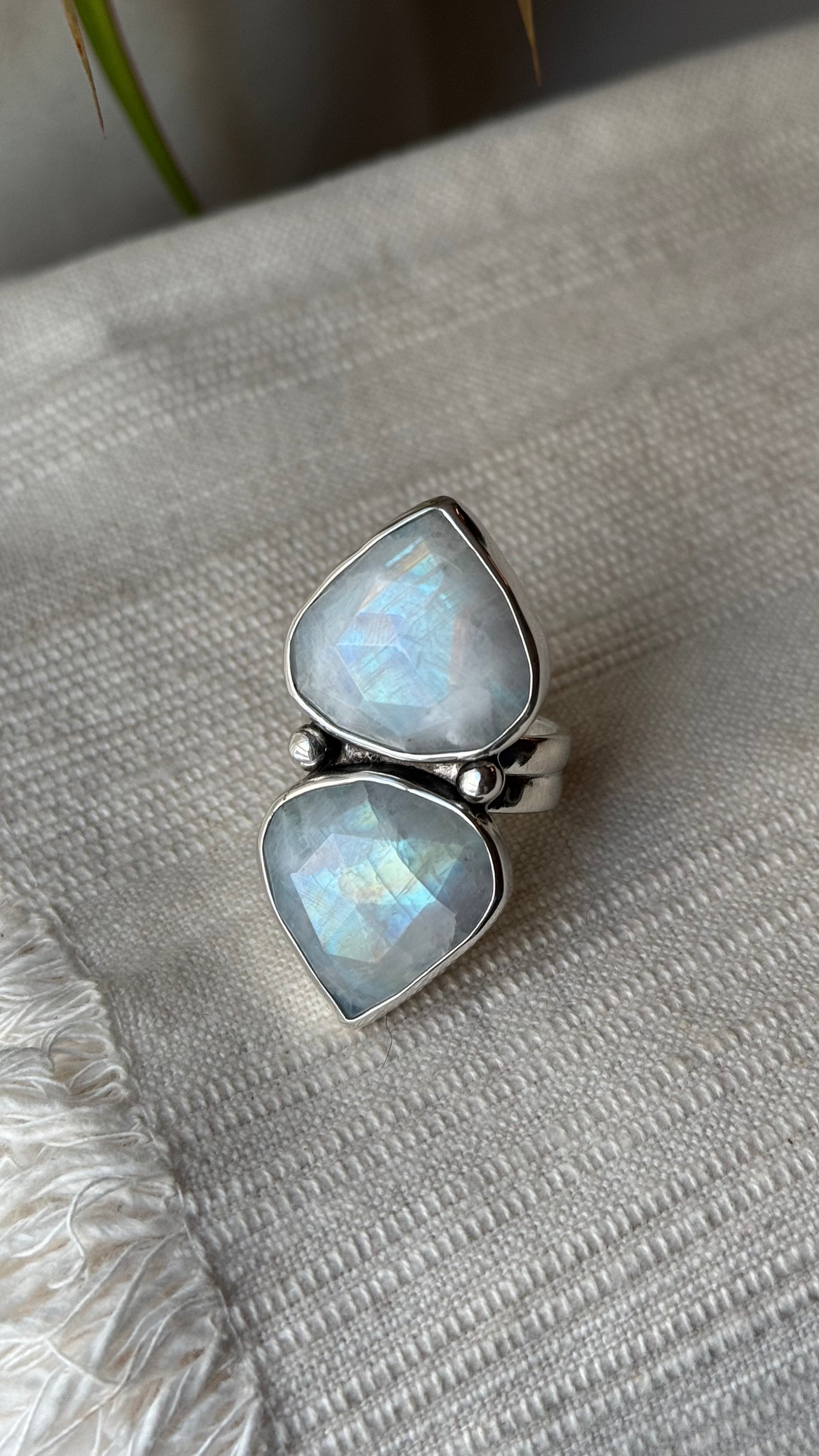 Moody Rainbow moonstone ring. A perfect statement ring for moonstone lovers.