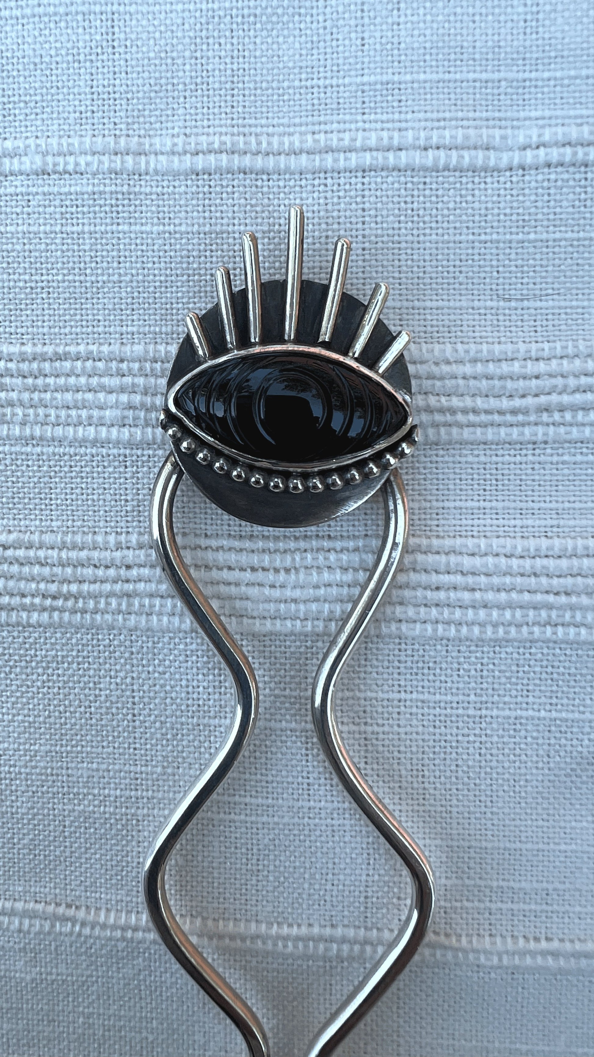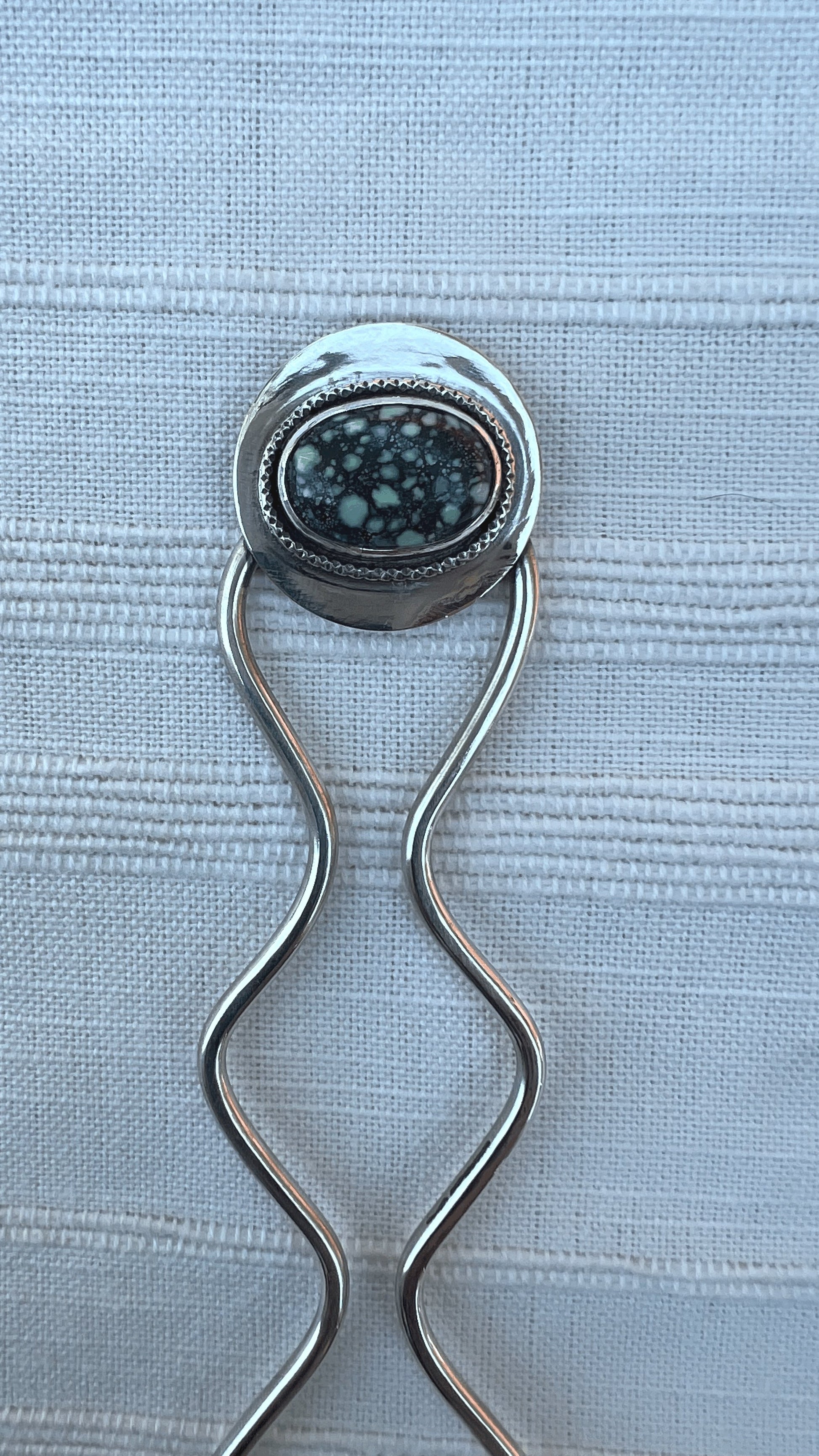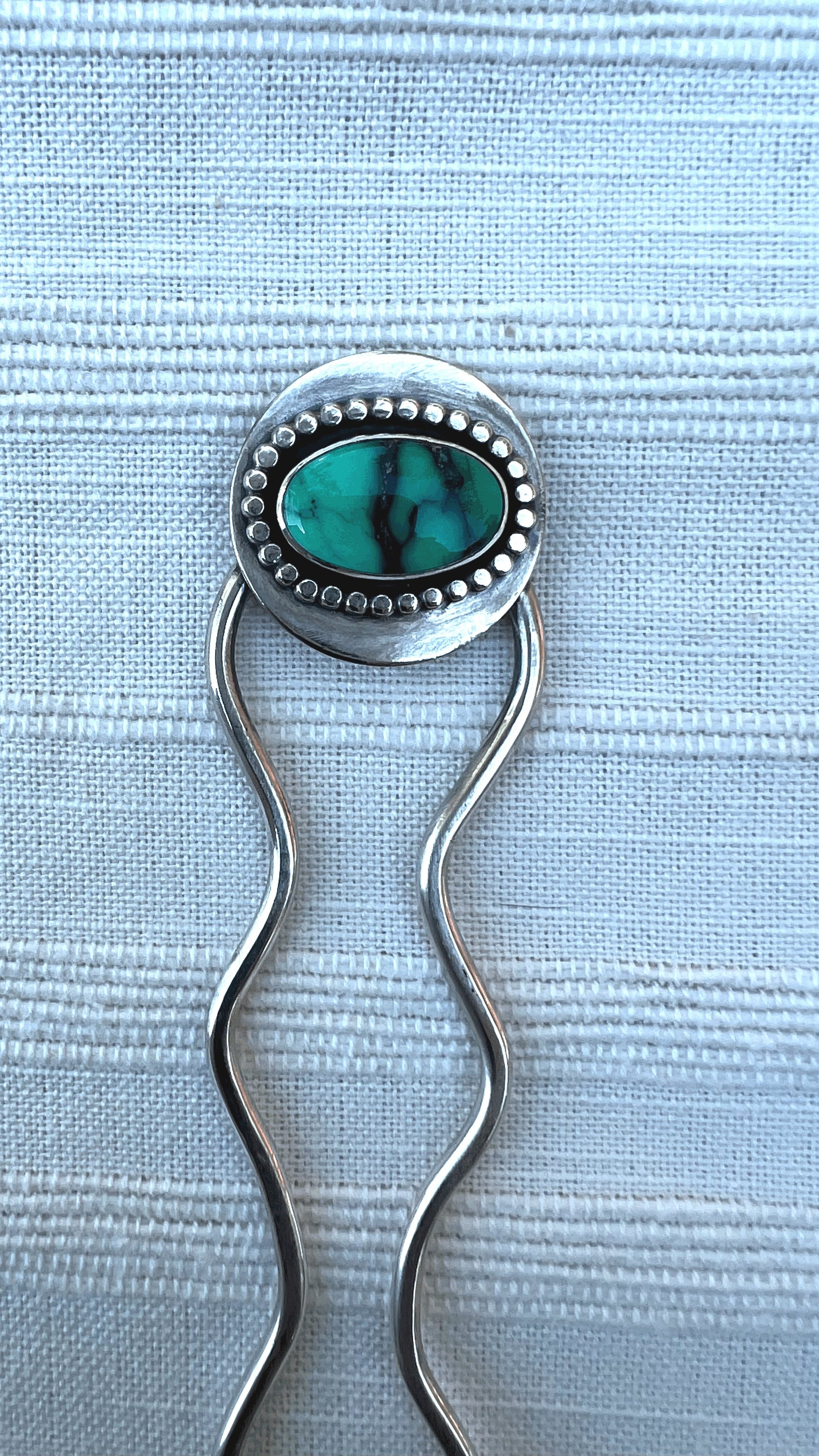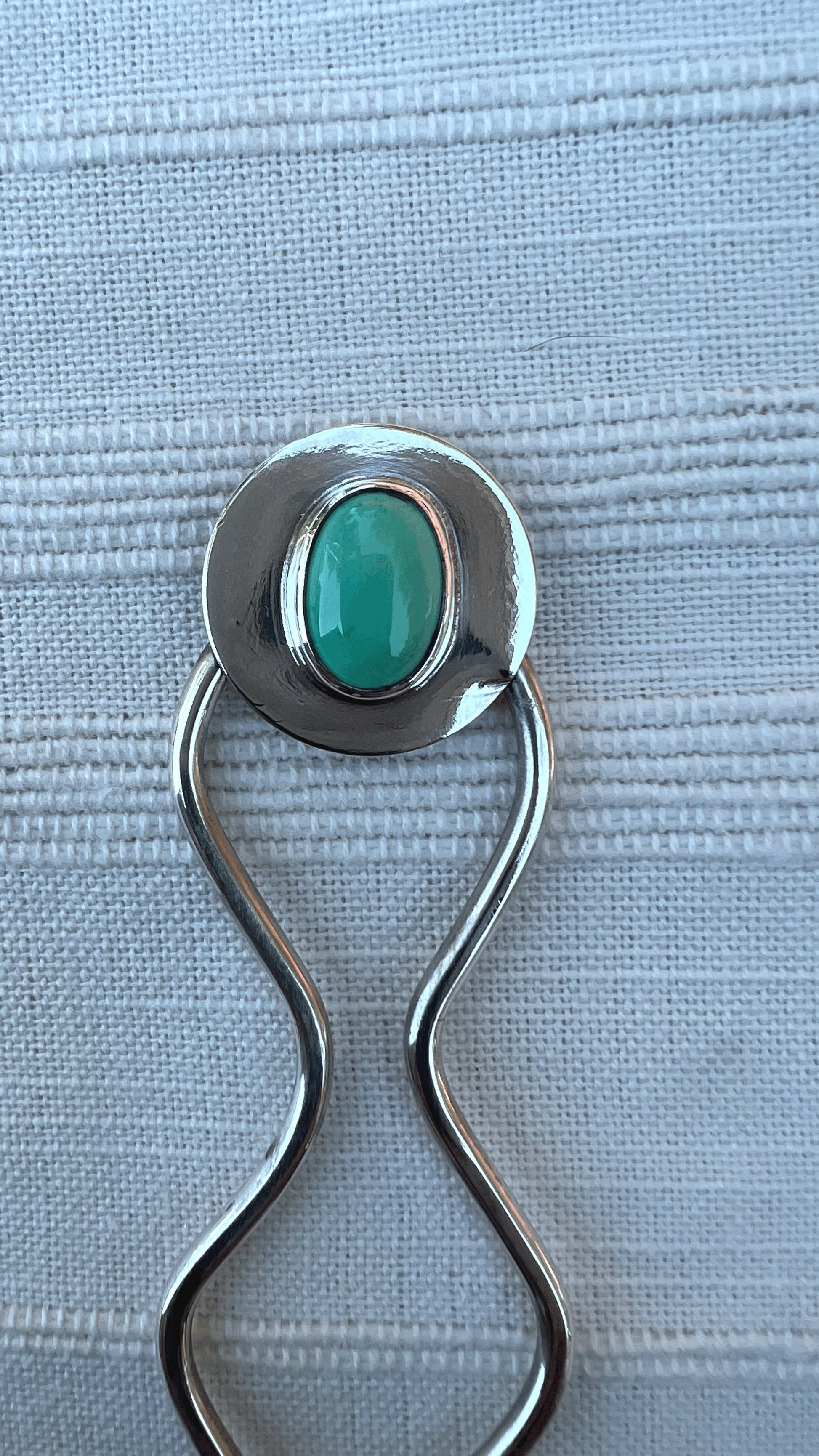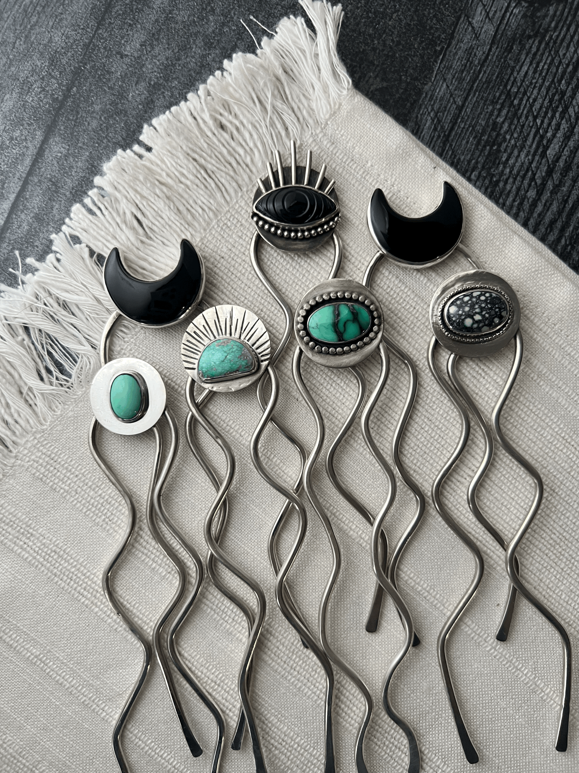 Solid sterling silver (with fine silver bezel) hair forks. These boho chic forks are the perfect accessory for your updo!