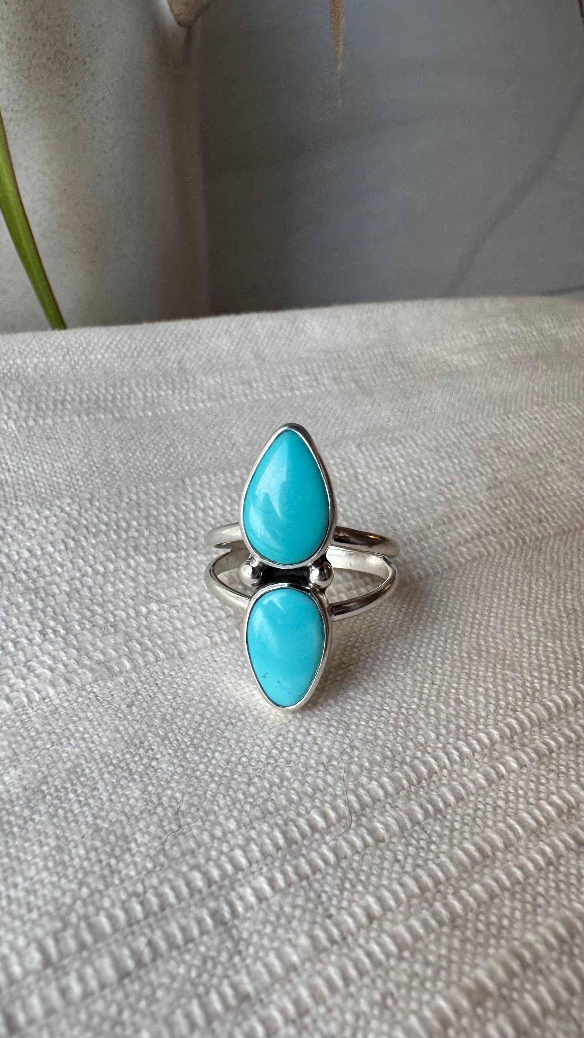 Fox Turquoise Double Stone Ring (Sz 7.75)