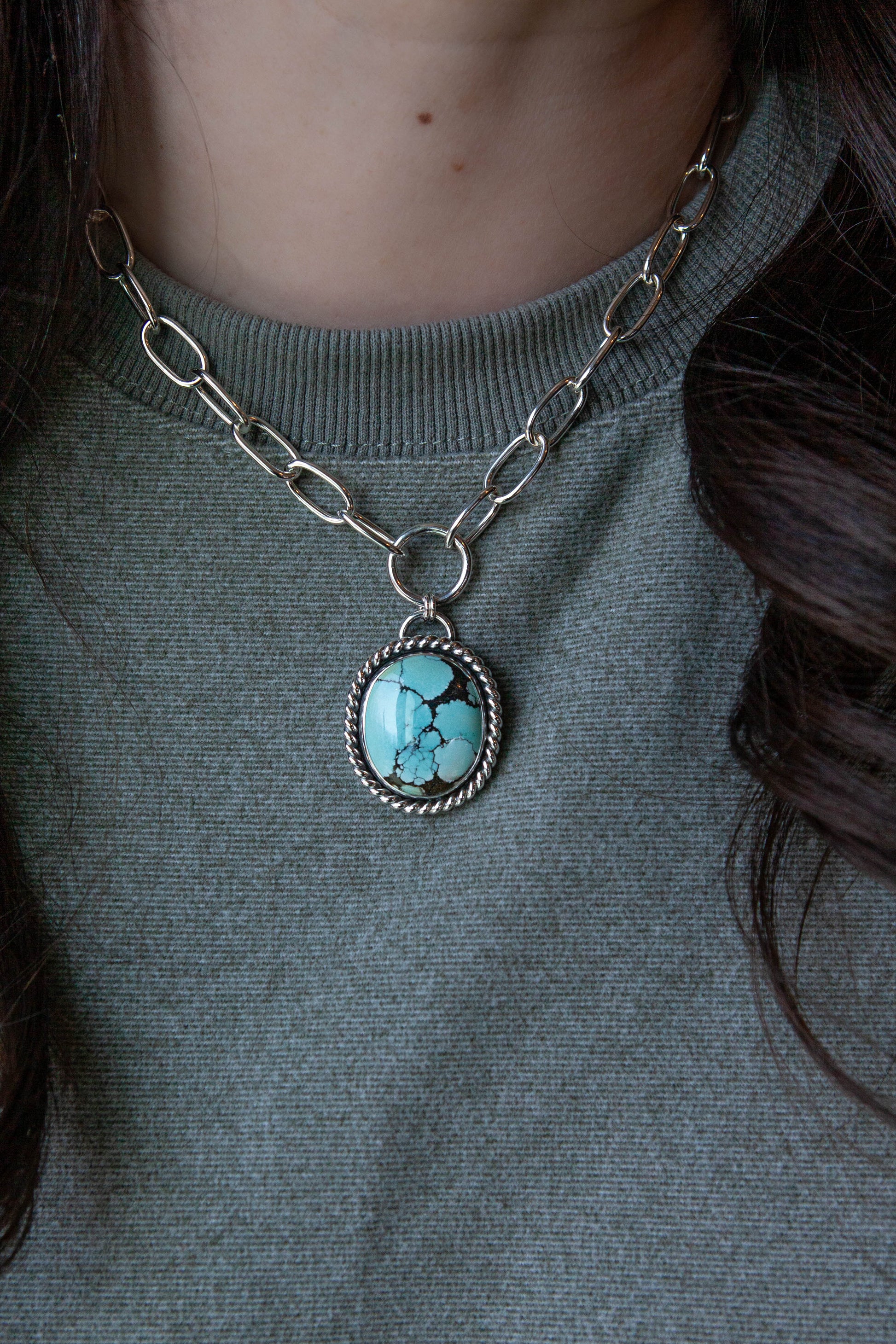 Exquisite Hubei Turquoise Chunky Paperclip Chain Necklace – Handcrafted with Solid Sterling Silver