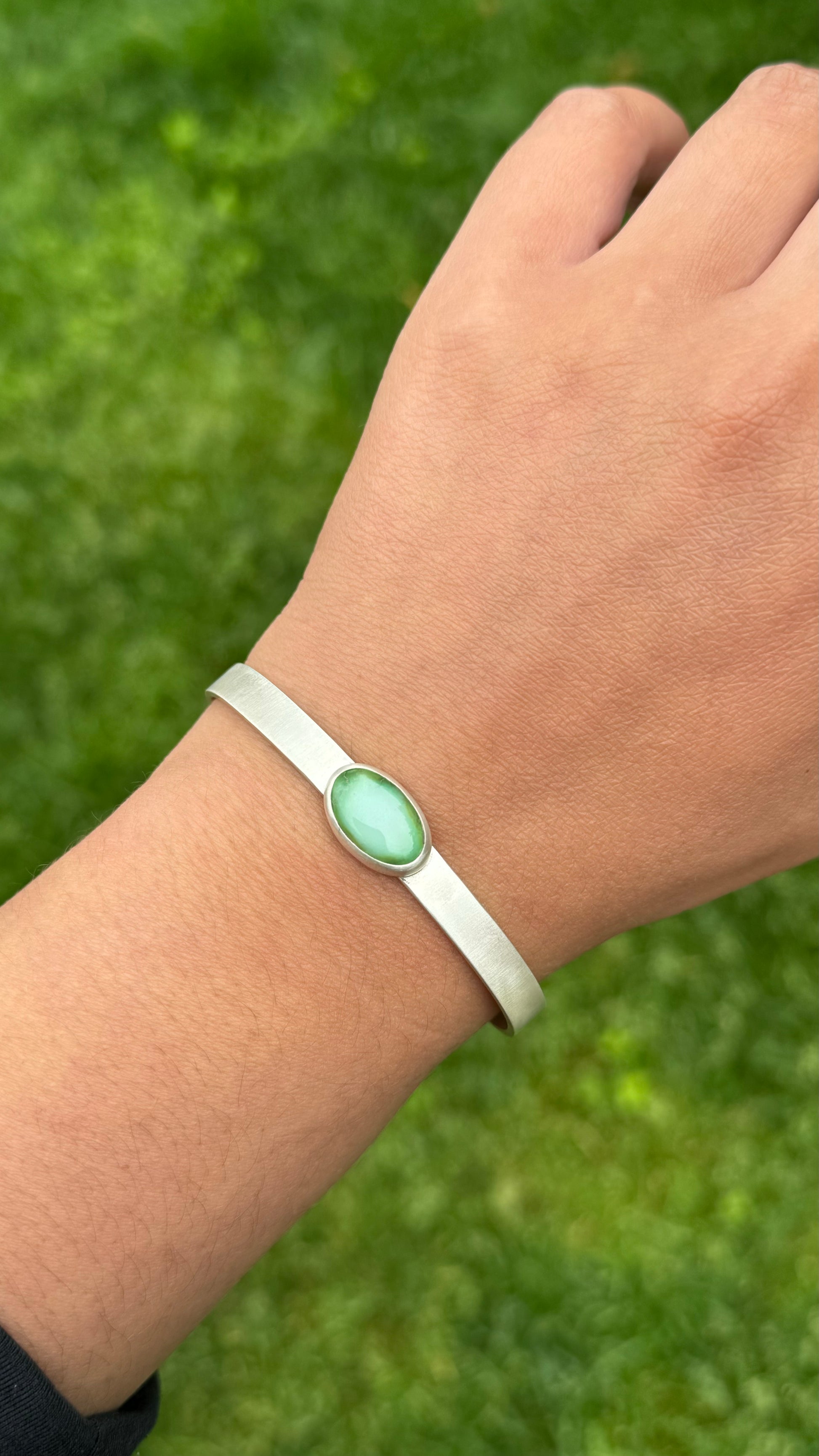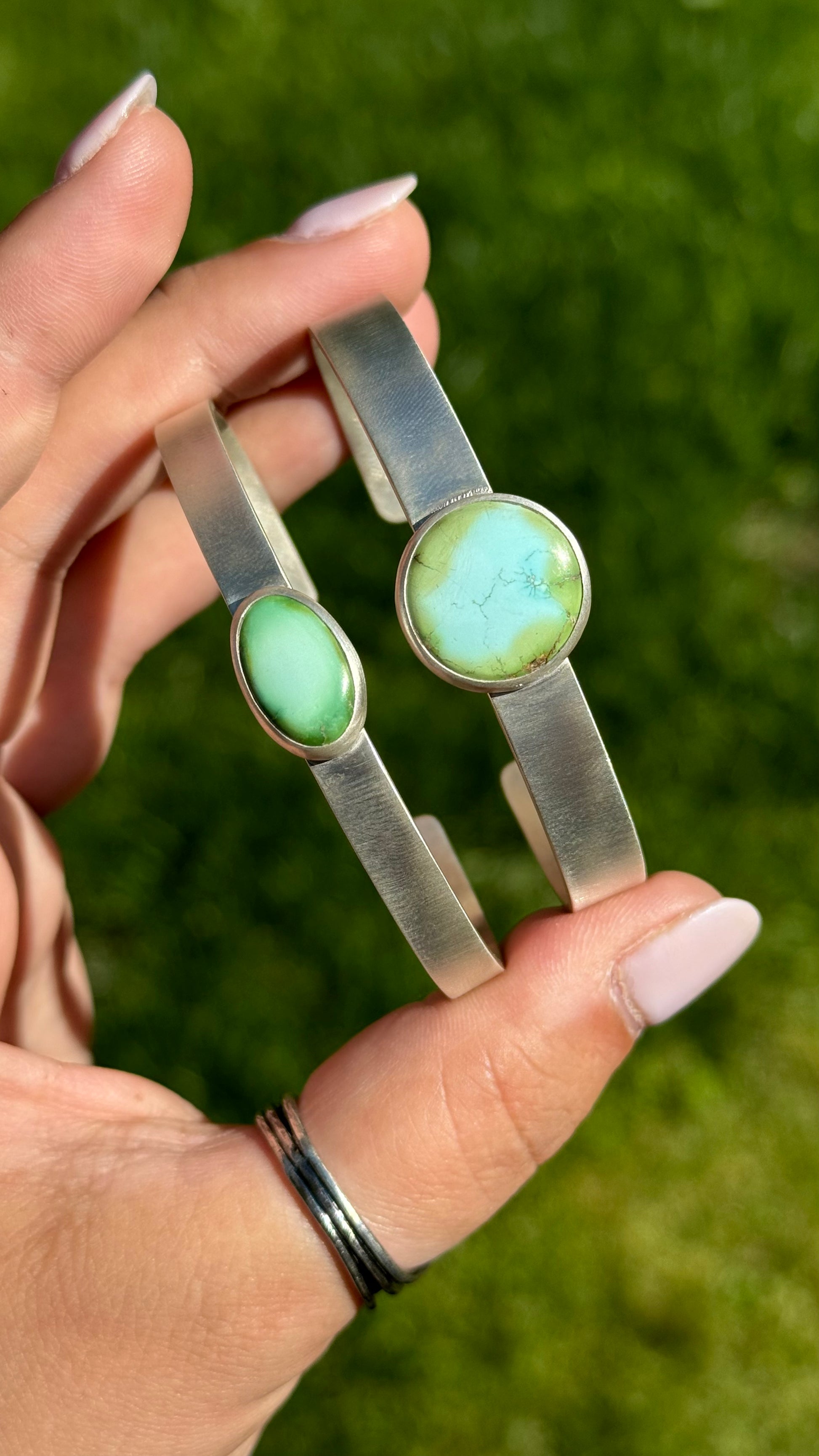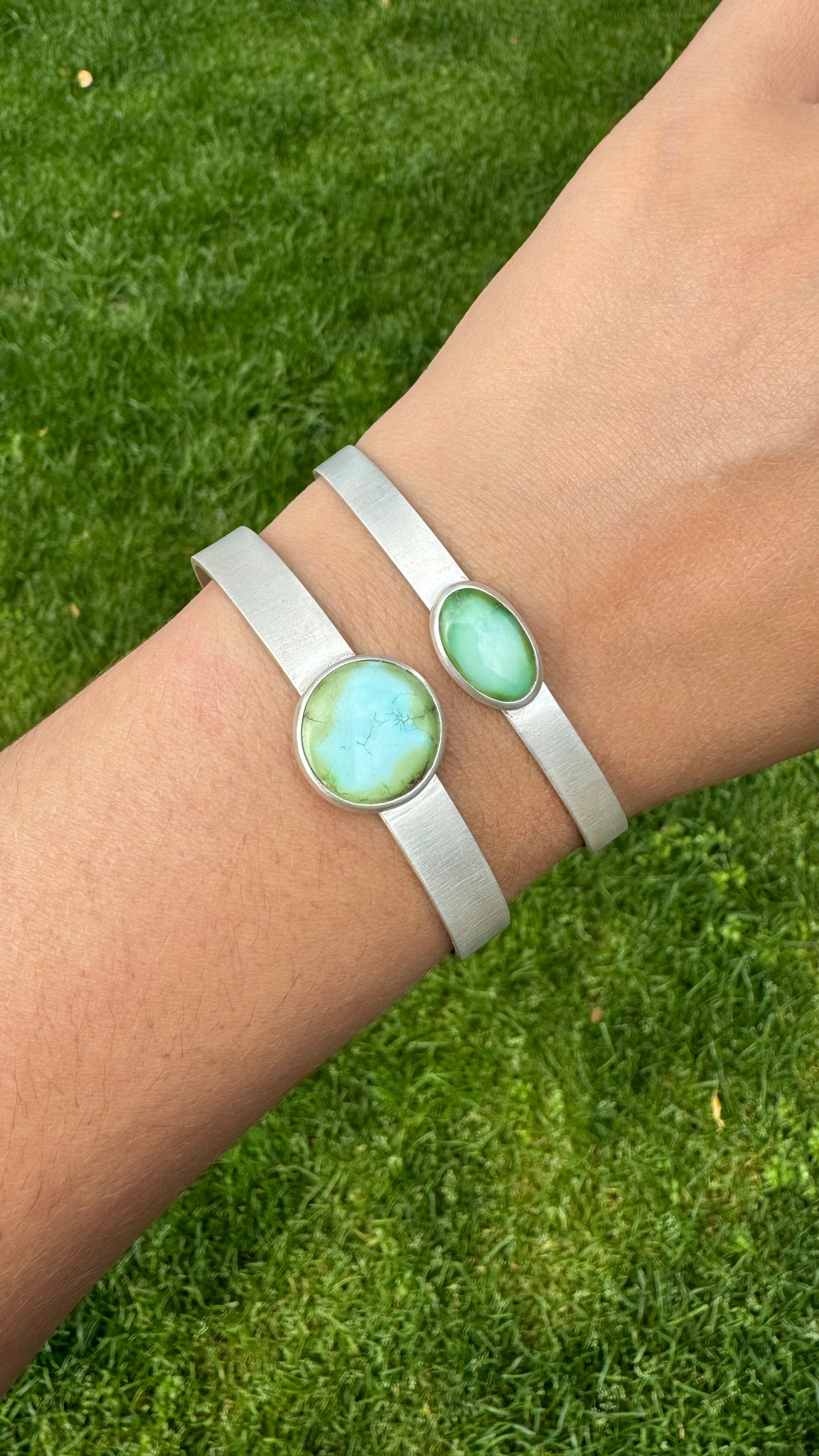 Sonoran Rose turquoise cuff with a buttery matter finish. This cuff is the smaller of the two cuffs at 6mm wide and 1.5mm thick.
