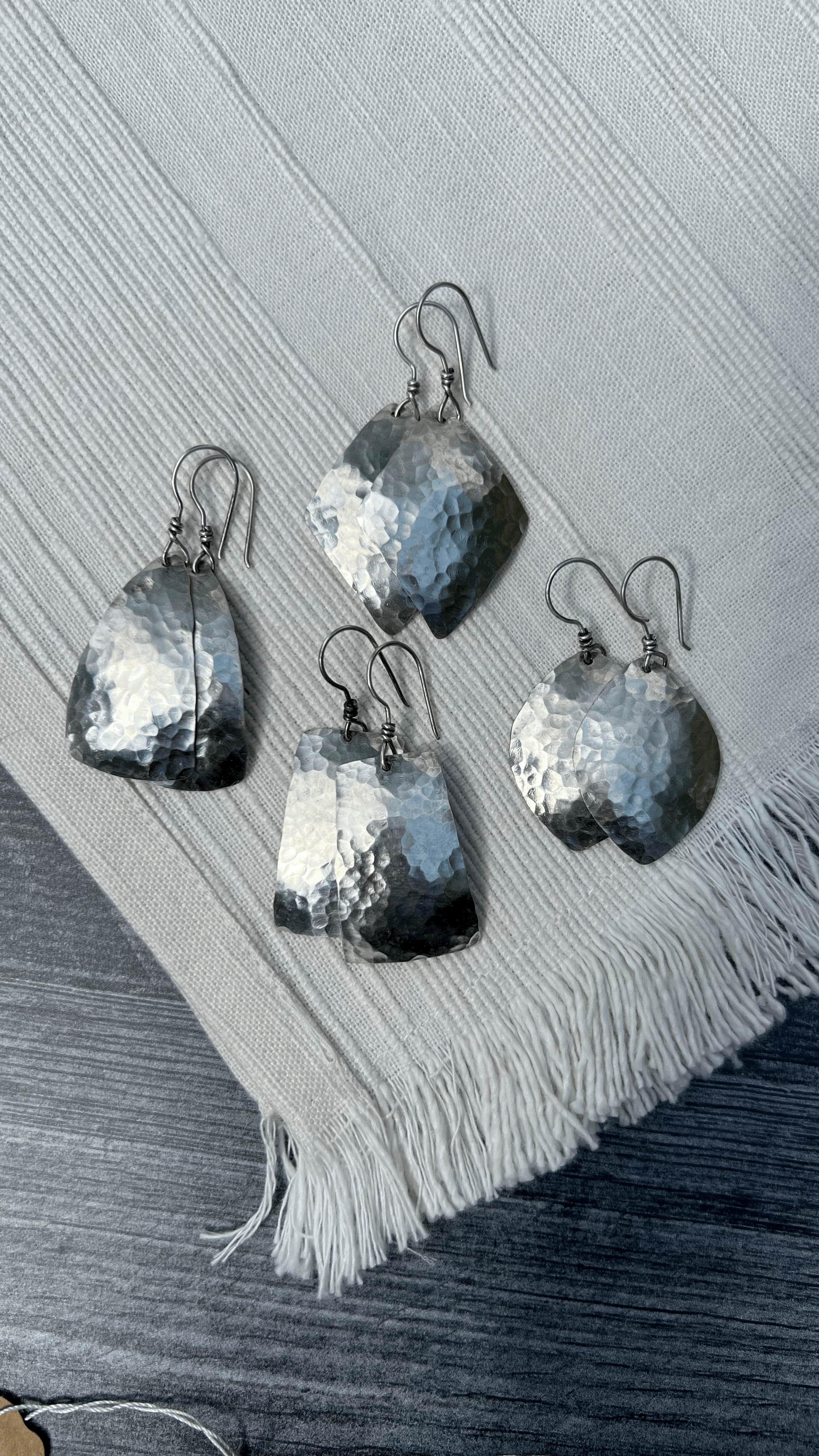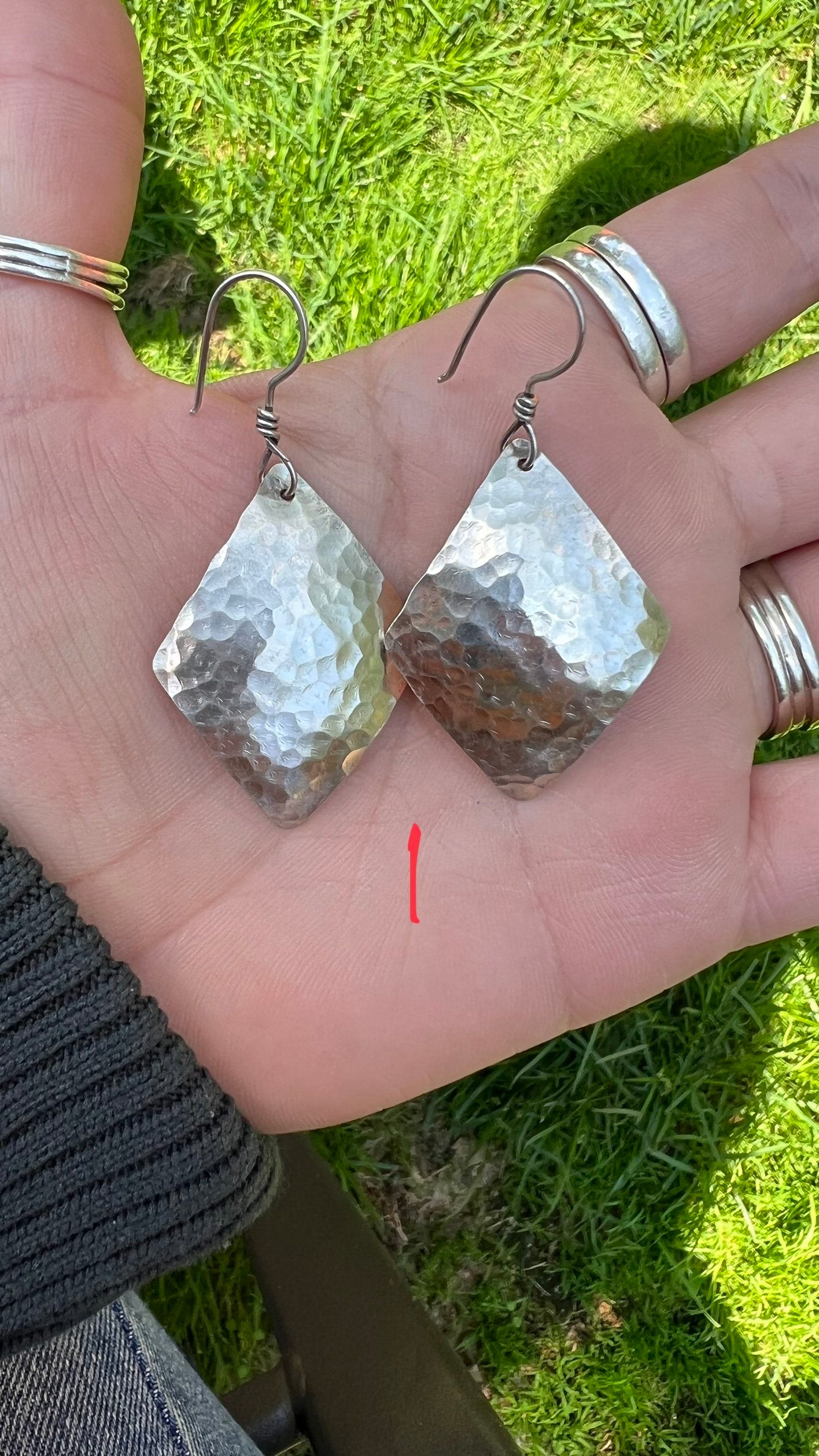 - Earring #2 was hammered from the back side leaving satin finish.