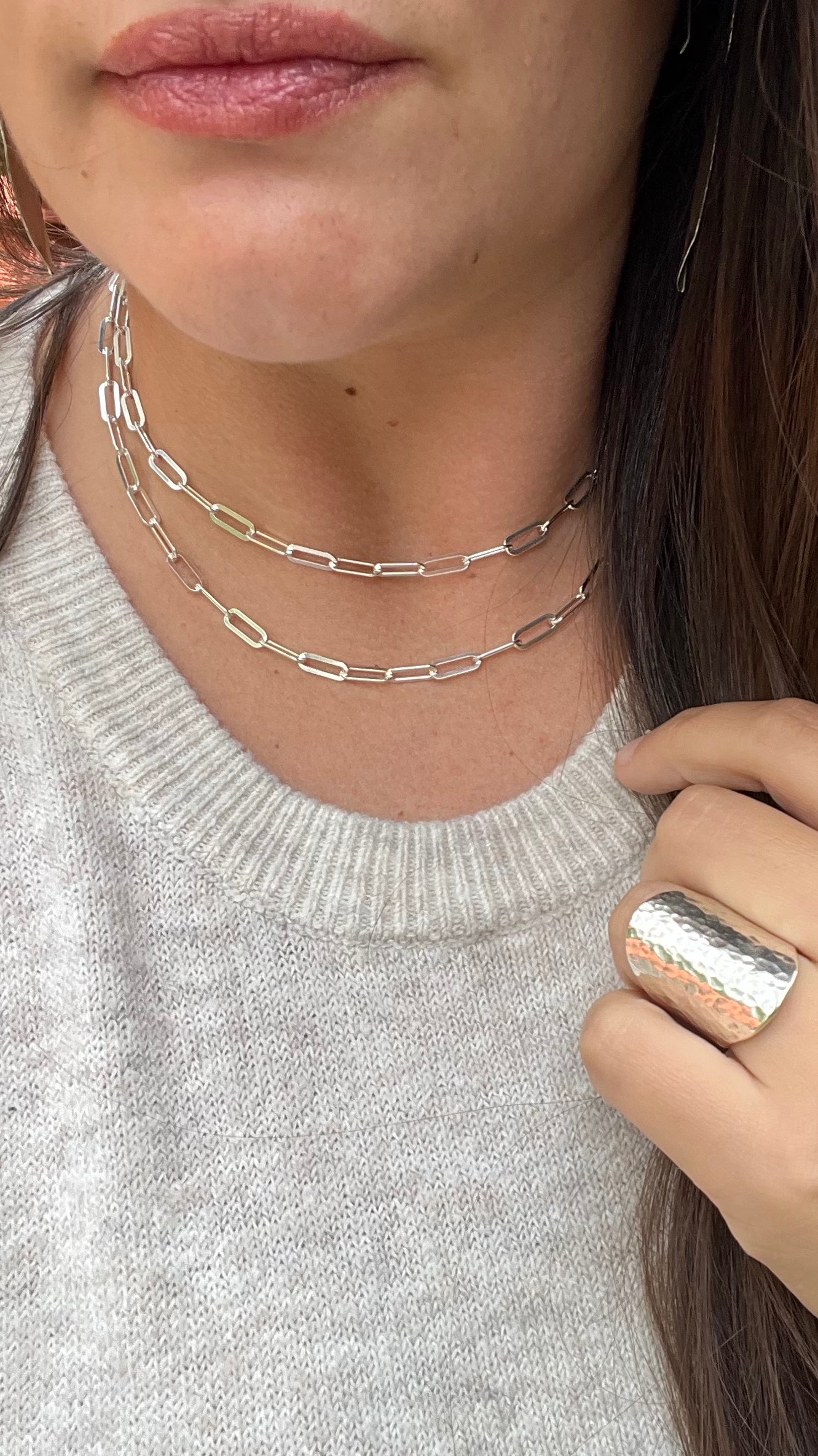 Introducing our sterling silver paperclip necklace, a must-have accessory for the modern woman. This sleek and versatile chain adds a touch of sophistication to any outfit, effortlessly transitioning from day to night. Elevate your style with this chic and timeless piece.
